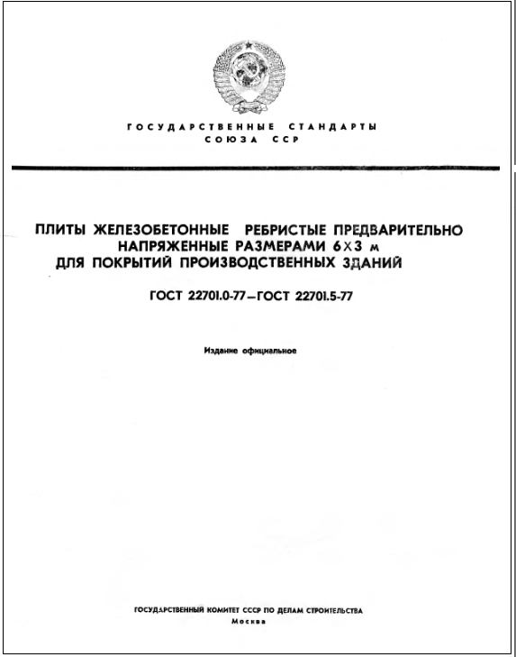 ГОСТ 22701.0-77-22701.5-77. Плиты железобетонные ребристые предварительно напряженные размерами 6х3 м для покрытий производственных зданий