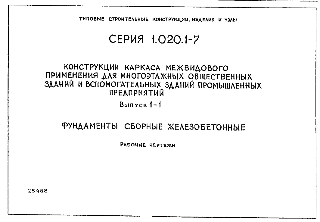 Серия 1.020.1-7. Конструкции каркаса межвидового применения для многоэтажных общественных зданий и вспомогательных зданий промышленных предприятий
