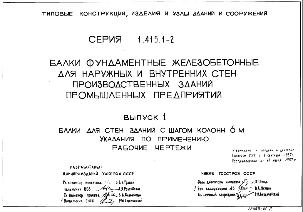 Серия 1.415.1-2. Балки фундаментные железобетонные для наружных и внутренних стен производственных зданий промышленных предприятий.