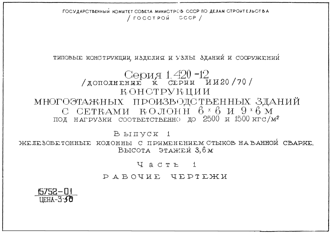 Серия 1.420-12. Конструкции многоэтажных производственных зданий с сетками колонн 6х6 и 9х6 м