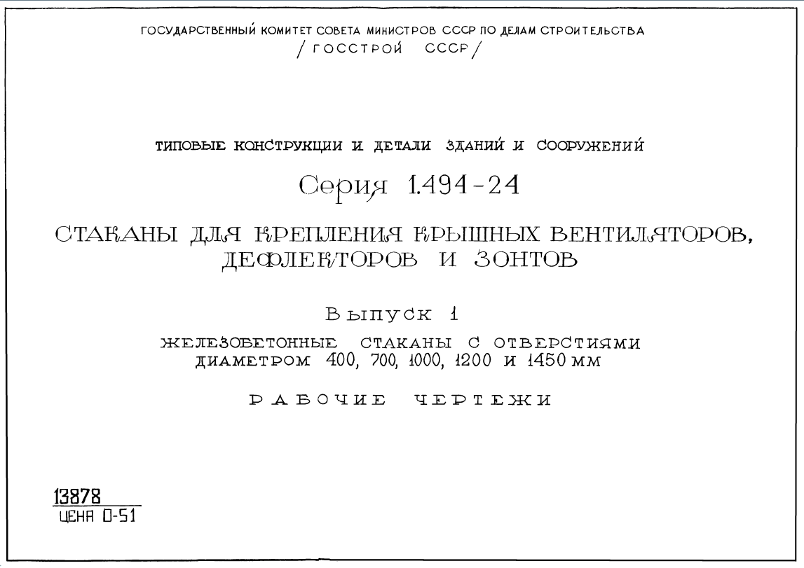 Выпуск 1. Железобетонные стаканы с отверстиями диаметром 400, 700, 1000, 1200 и 1450 мм.