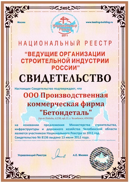 Свидетельство национального реестра