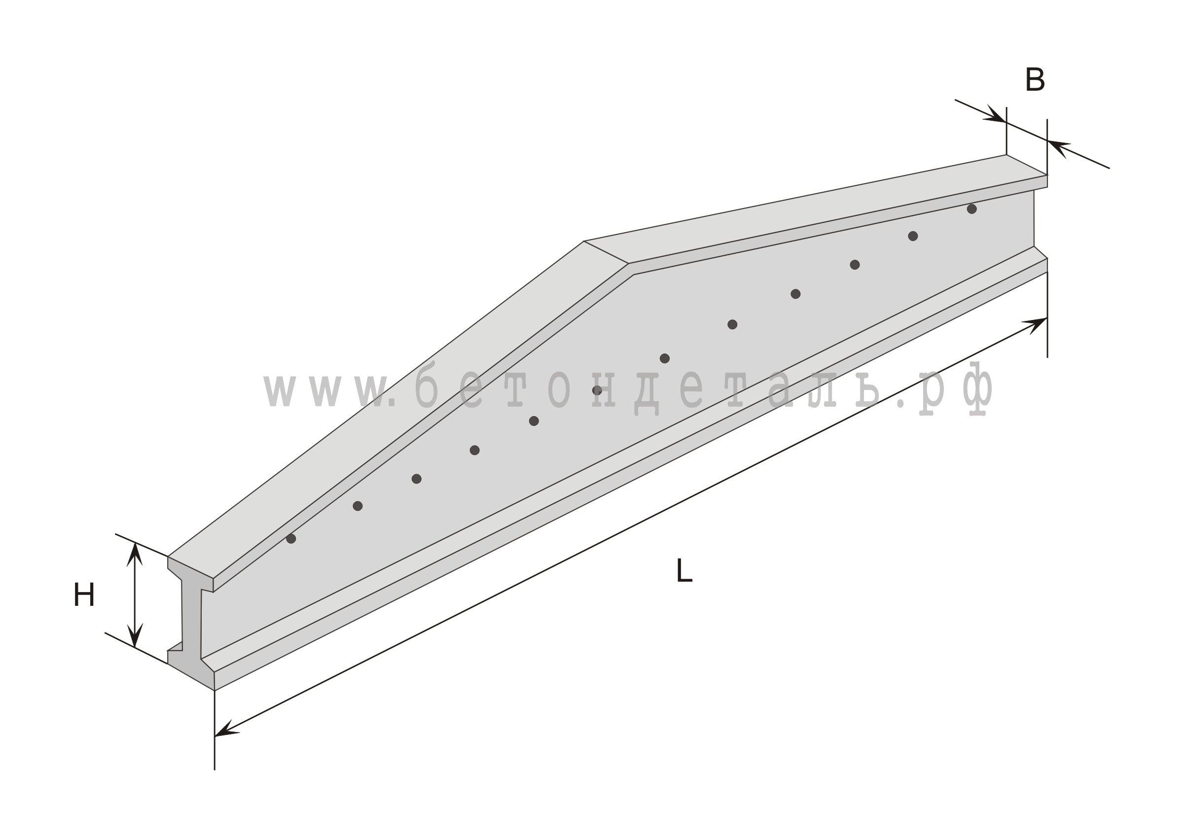 Стропильные балки 1Б 18 изготавливаются из тяжелого или специально облегченного конструкционного бетона. Балки изготовляют как предварительно напряженными. Балки армируются напрягаемой стержневой горячекатаной или канатной арматурой классов Aт-IVC, Aт-IVK, Aт-V, Aт-VCK , A-IV, A-V A-IIIB, A-III и арматурной проволокой класса Вр-1. На каждой балке имеются специальные строповочные отверстия для удобства монтажа и транспортировки. Так же могут быть использованы и монтажные петли.