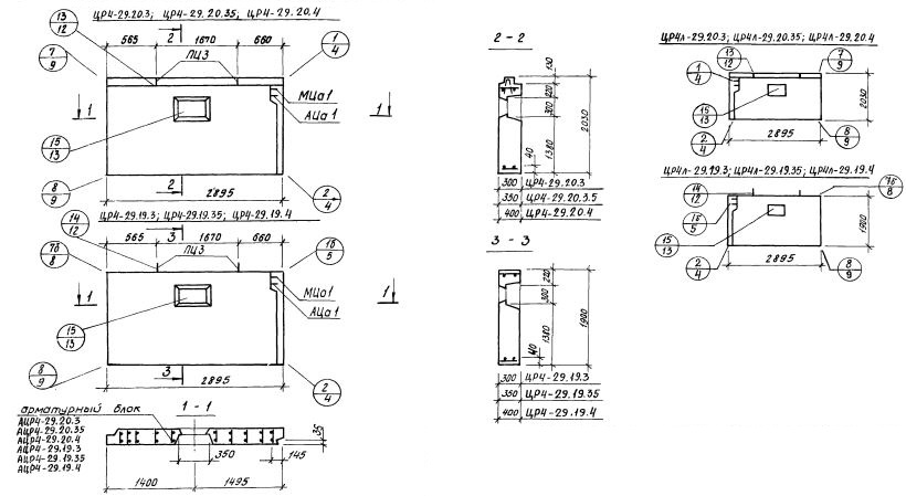 Серия 1.117-13    Панели наружных цокольных стен групп ЦР1; ЦР4; ЦР5  толщиной 300, 350, 400 мм.