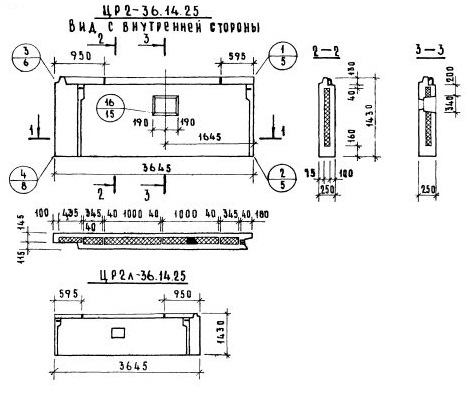 Серия 1.117-9    Панели групп ЦР1, ЦР2, ЦР4, ЦР5  толщиной 250 мм.